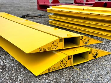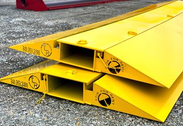 We offer a wide variety of road crossings. Our Layover Crossings have a single/double line for LayFlat Hose and optional fold up Ramps.(Sizes 10' , 12', 16' and 20' Crossings)